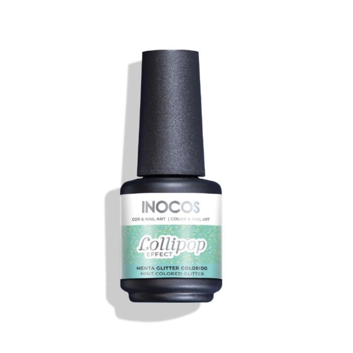 Verniz Gel INOCOS Efeito Lollipop Menta Glitter Colorido