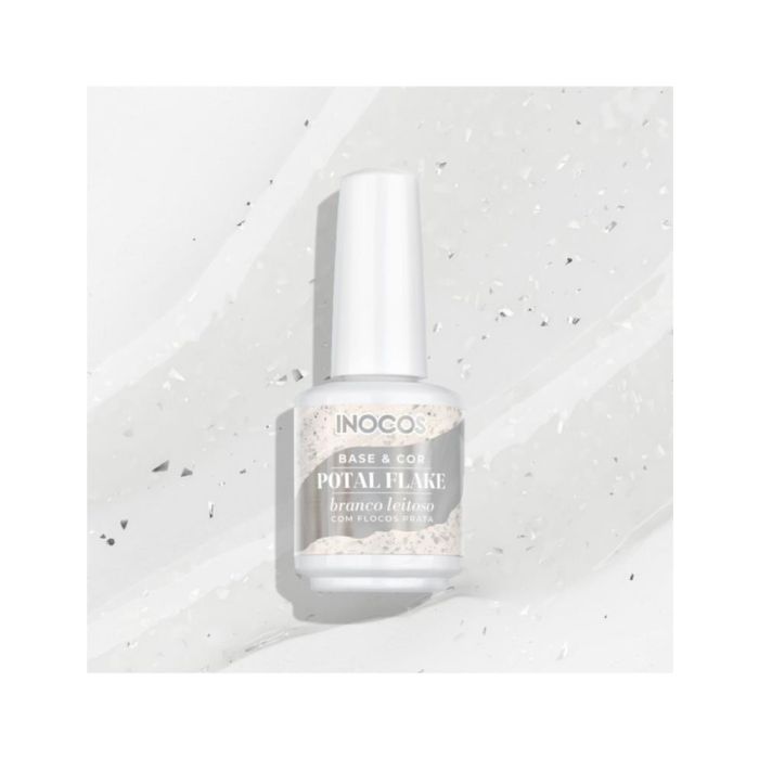 INOCOS VERNIZ GEL BASE POTAL BRANCO LEITOSO FLOCOS PRATA 15ML