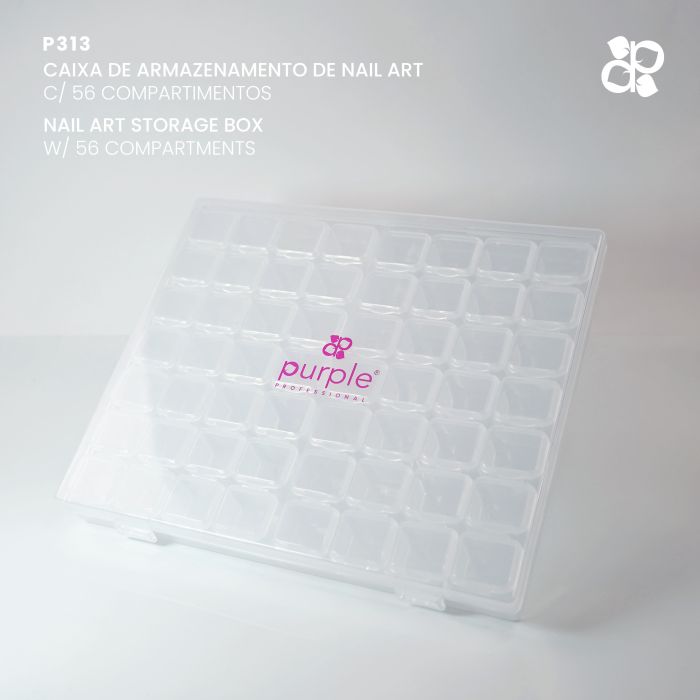 A Caixa de Armazenamento Nail Art da Purple foi especialmente concebida para manter todos os elementos de decoração organizados, protegidos e de fácil acesso. Com um total de 56 compartimentos individuais, esta caixa é perfeita para armazenar pequenos itens como cristais, strass, pedrarias, glitter, studs, foil, entre outros.