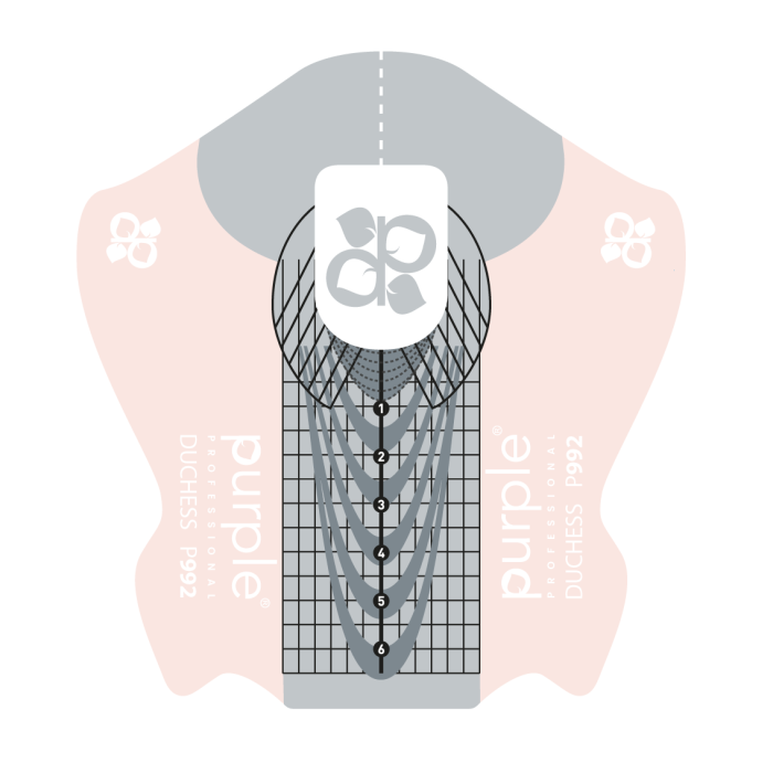 Os Moldes Duchess da Purple foram desenvolvidos para técnicas de alongamento de unhas com gel, acrílico ou polygel, oferecendo suporte preciso, estável e confortável durante a construção. Com design anatómico e linhas de orientação marcadas, facilitam a criação de diferentes formatos e comprimentos com simetria e precisão.