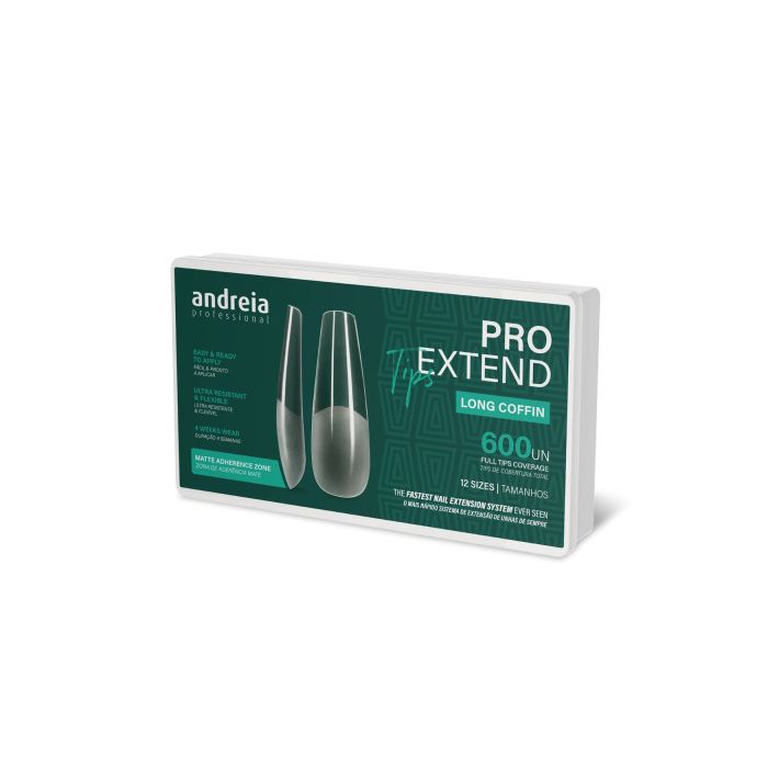 As Andreia Tips Long Coffin Pro Extend apresentam um formato coffin (bailarina) comprido, perfeito para um alongamento sofisticado, atual e com impacto visual.