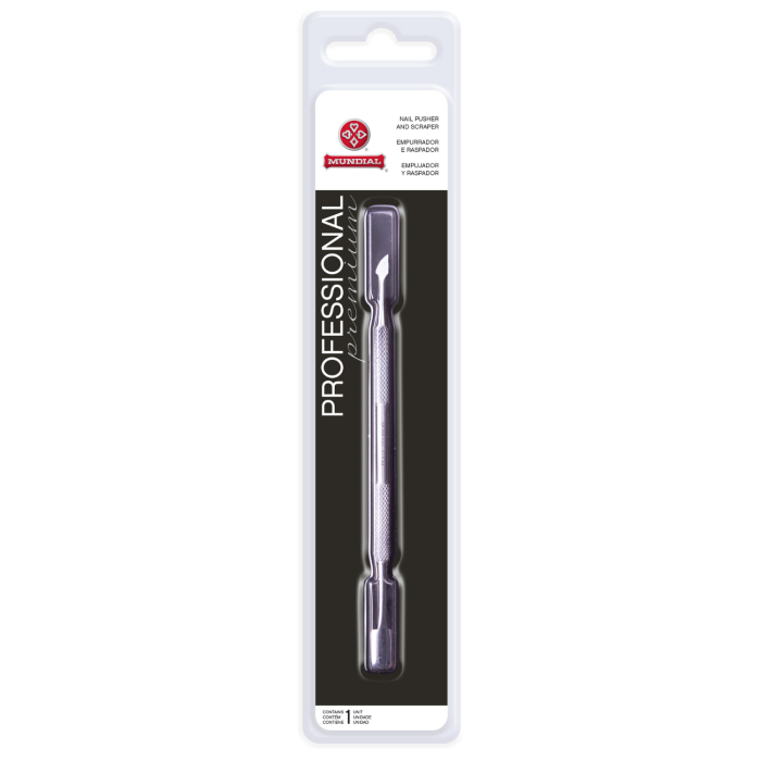 A espátula empurradora e raspadora de cutículas Mundial 371M é um item obrigatório de qualquer necessaire! Feita em aço inoxidável, é esterilizável em estufa ou autoclave, com material resistente ao uso contínuo. A sua lâmina é afiada para melhor retirar a cutícula que fica presa nos cantinhos da unha, com o empurrador redondo no formato certo das unhas! O seu cabo possui uma textura para maior segurança e conforto no uso, garantindo um produto de alta durabilidade e qualidade.