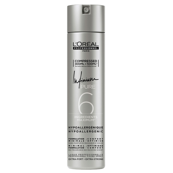 Foi desenvolvida a pensar no uso frequente do profissional: a sua composição mínima em ingredientes permite um conforto incomparável e minimiza o risco de reações alérgicas. Este spray de cabelo ultra-fino e extra seco proporciona alta fixação sem deixar um toque áspero, para qualquer look cabelo. Não deixa odor nem no salão nem no cabelo.