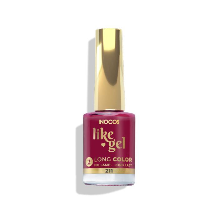 O verniz Like Gel 211 da INOCOS num tom vermelho borgonha oferece um acabamento efeito gel com secagem rápida, sem necessidade lâmpada. A sua fórmula vegan e de alta duração com um resultado impecável e brilhante, para umas unhas perfeitas até 2 semanas.