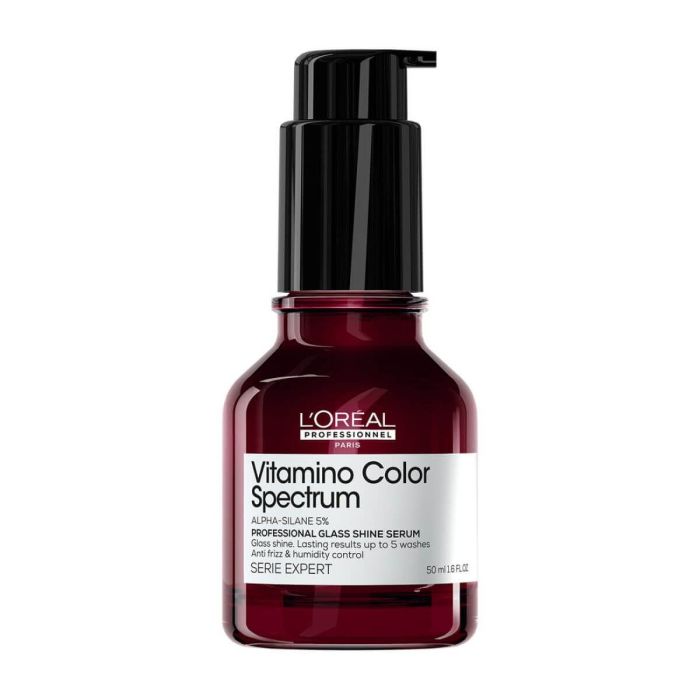 Descobre o sérum de brilho Vitamino Color Spectrum de L'Oréal Professionnel. Este sérum profissional é desenvolvido para proporcionar um brilho cristalino instantâneo ao cabelo com coloração. Formulado com 5% de alfa-silano, reveste a fibra capilar para proporcionar uma proteção antifrizz e protege o cabelo da humidade e calor até 230 ºC